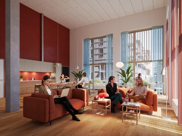 I hjørnet af Trægården ligger et rummeligt fælleslokale til beboerarrangementer, små events, kaffe, fællesspisning, legeaftaler og private fejringer. Lokalet kan bookes af beboerne og rummer køkken med service, lounge, toilet, caféområde og et stort langbord. Dørene kan åbnes ud til et skønt udeområde, perfekt til solrige dage og sommeraftener.